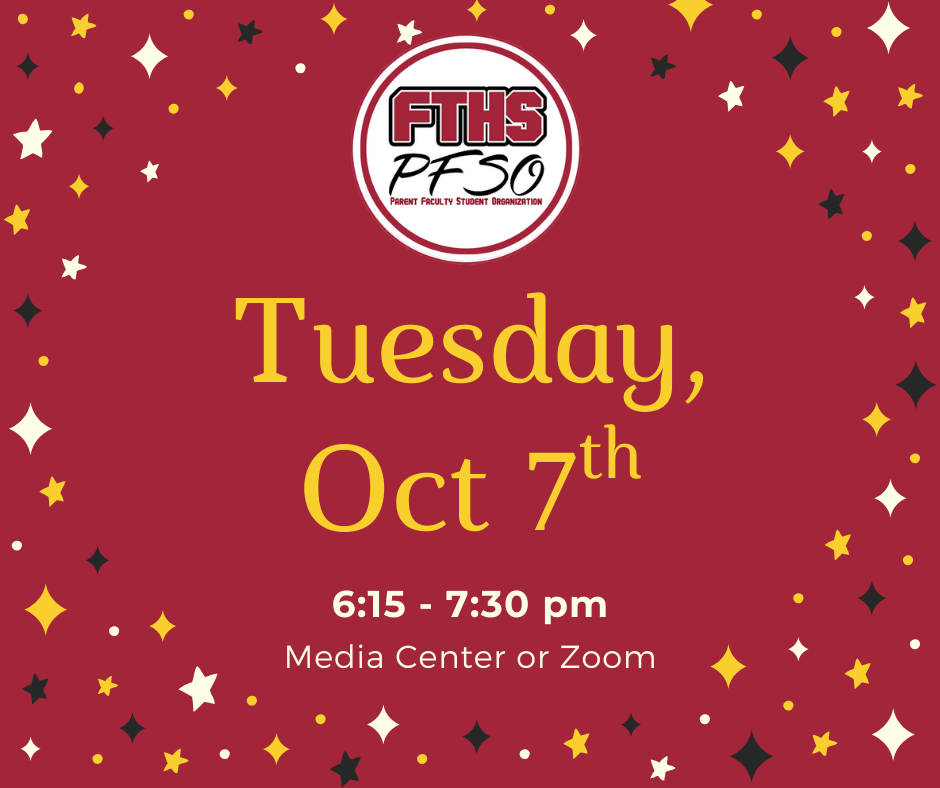 We’re excited to invite you to our next PFSO meeting on Tuesday, October 7th at 6:15 PM. Come join us in the Media Center — or cozy up at home and join us on Zoom.